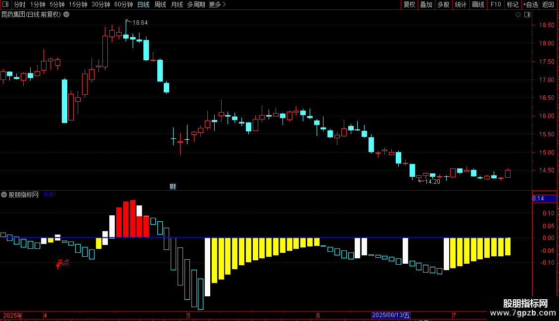 注意: STICKLINE(VAR6>REF(VAR6,1) AND VAR6<0 AND VAR6<VAR7,VAR6,0,3,0);