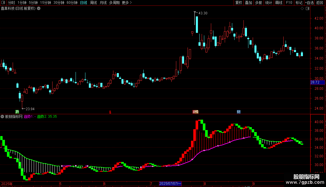 趋势1:IF(VAR7>REF(VAR7,1),VAR7,DRAWNULL),LINETHICK2,COLORFF00FF;