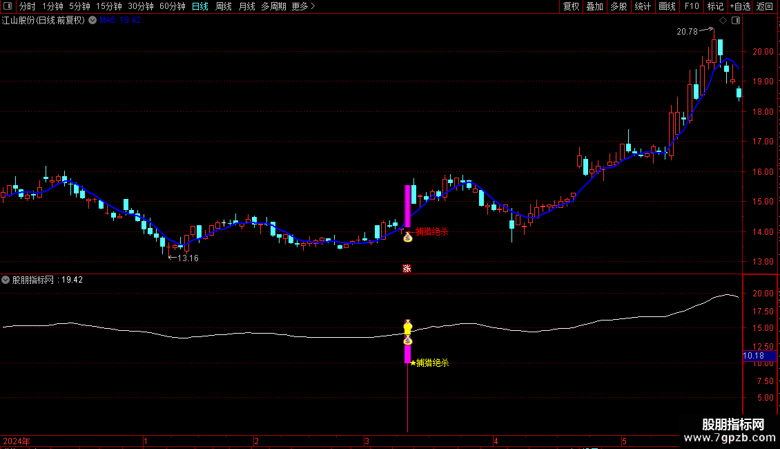 操盘线:MA(CLOSE,5)COLORBLUE LINETHICK2;