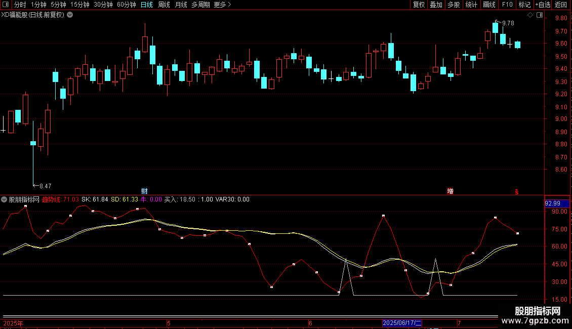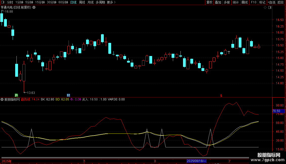 {涨势确立: VAR1*(VAR2C>0 AND VAR2D*16+81.5)*VAR1,COLOR80FFFF ;}