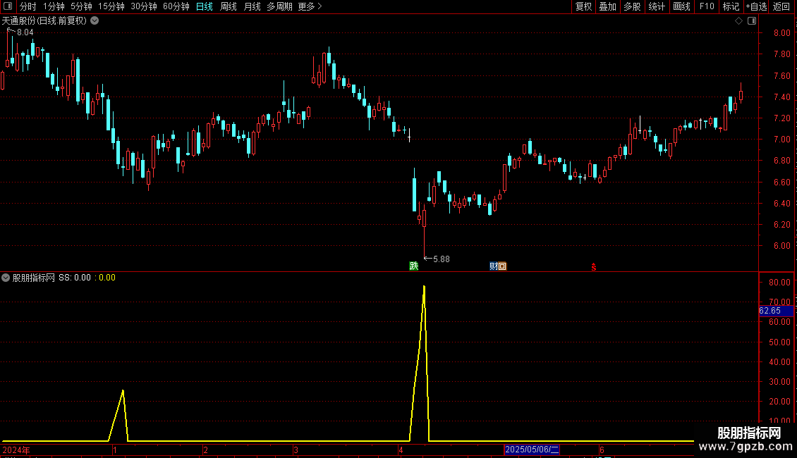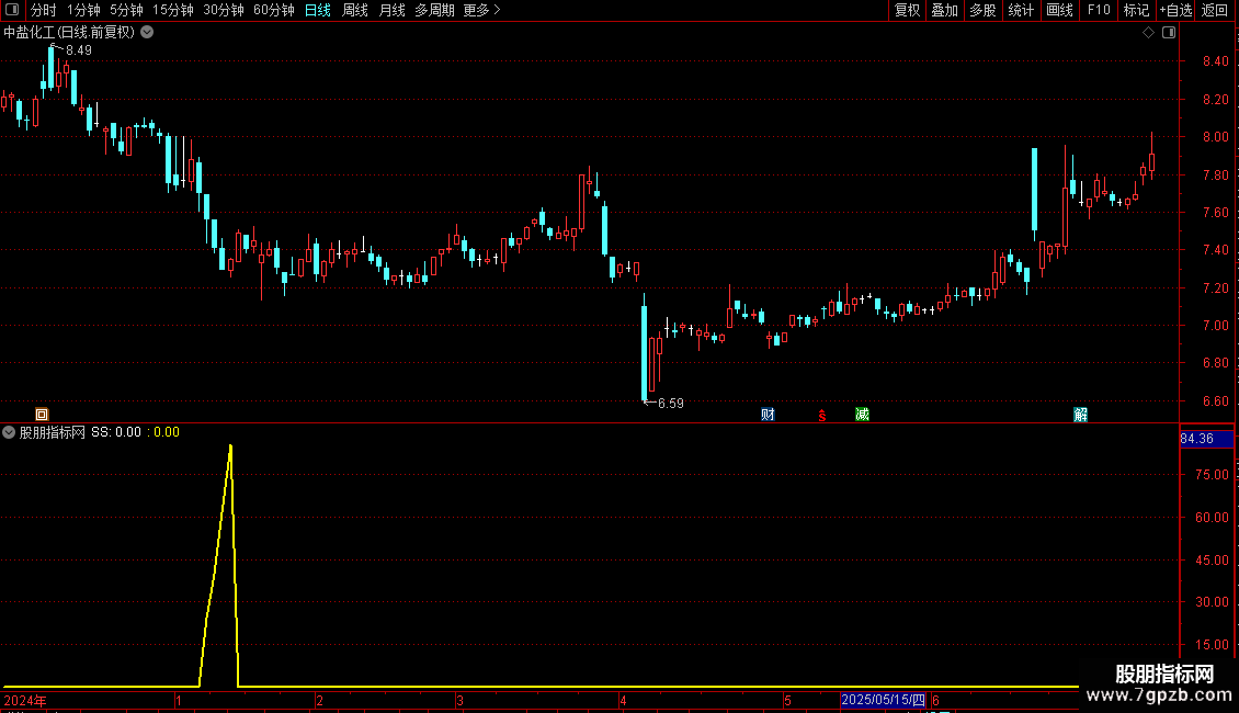 (REF(SS,2)<REF(SS,1)AND SS>REF(SS,1))*SS,COLORYELLOW,LINETHICK2;