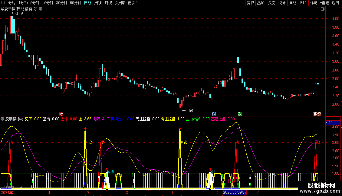 有庄控盘: 控盘>REF(控盘,1) AND 控盘>0,LINETHICK3;