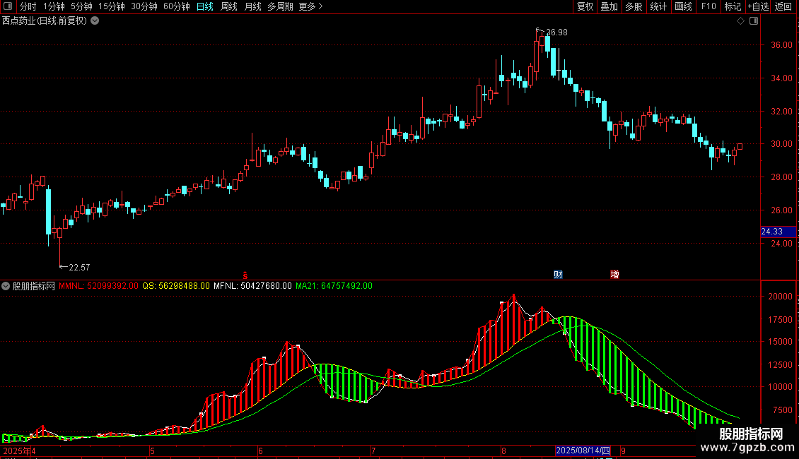 MM:=EMA(SLOPE(VAR5,21)*20+VAR5,55)*VAR3;