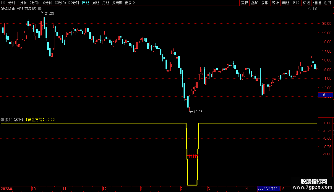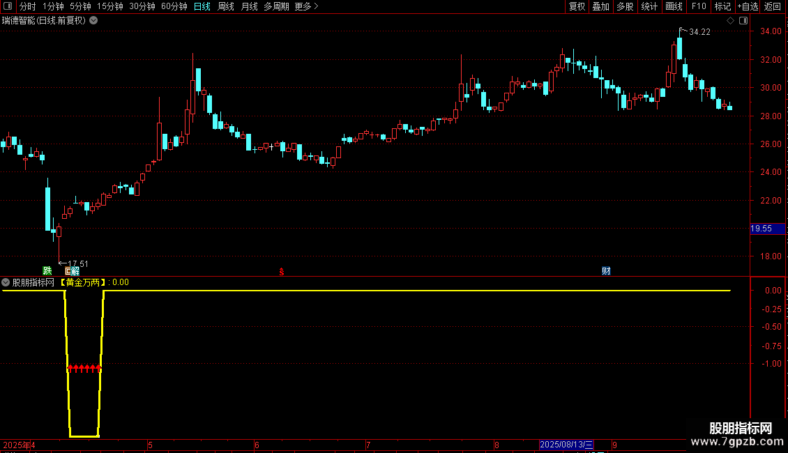【黄金万两】:IF(RRD,-2,0),COLORYELLOW,LINETHICK3;