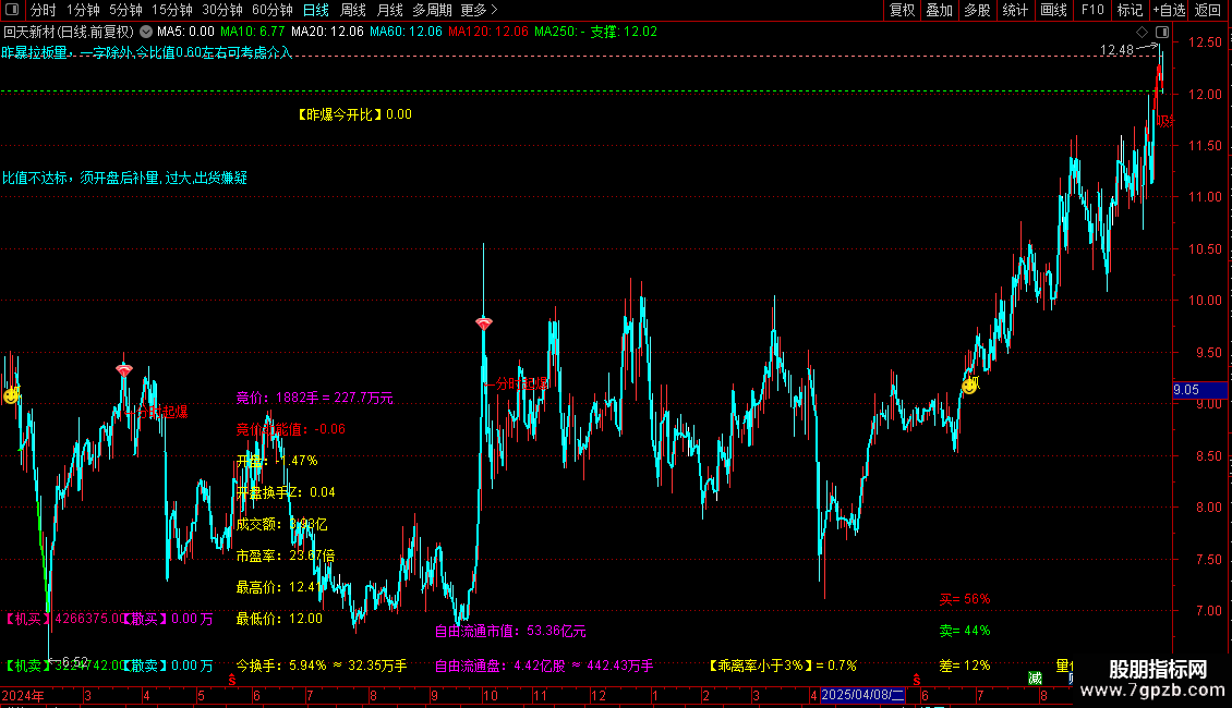 〖分时变色〗分时主图指标 隔日超短分时变色 精准捕捉上涨下跌信号 源码