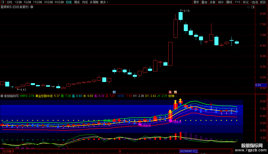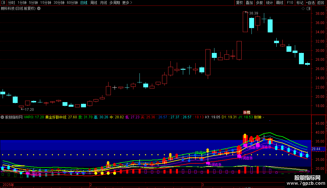 上中:=IF(1=1,低0+KJ*0.618,DRAWNULL),COLORMAGENTA,NODRAW;