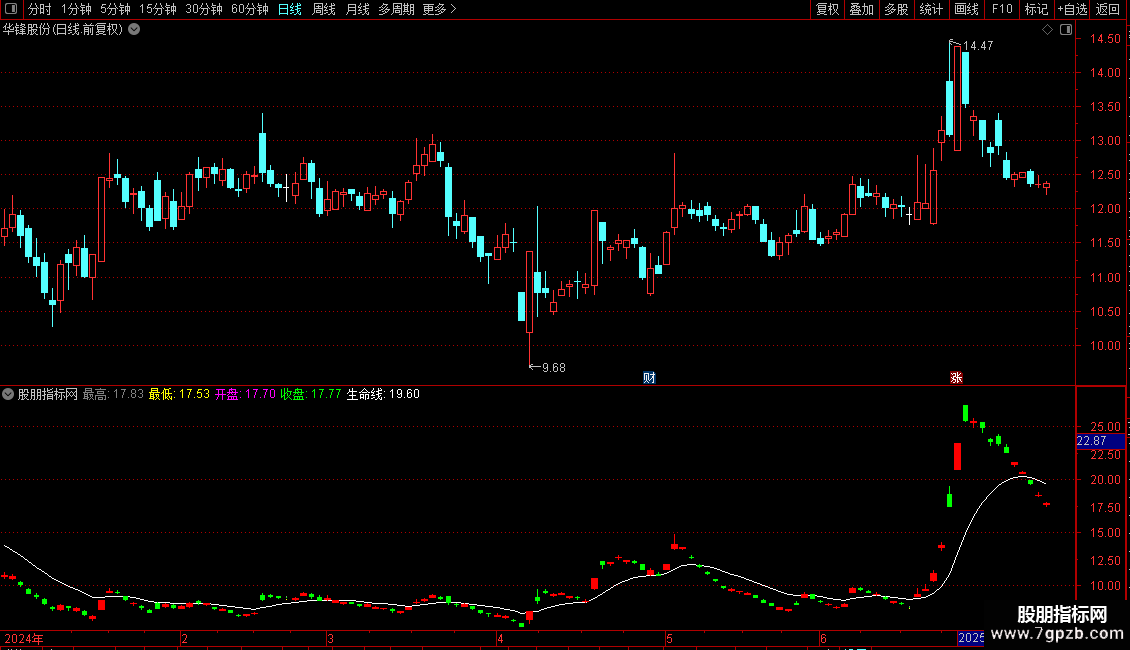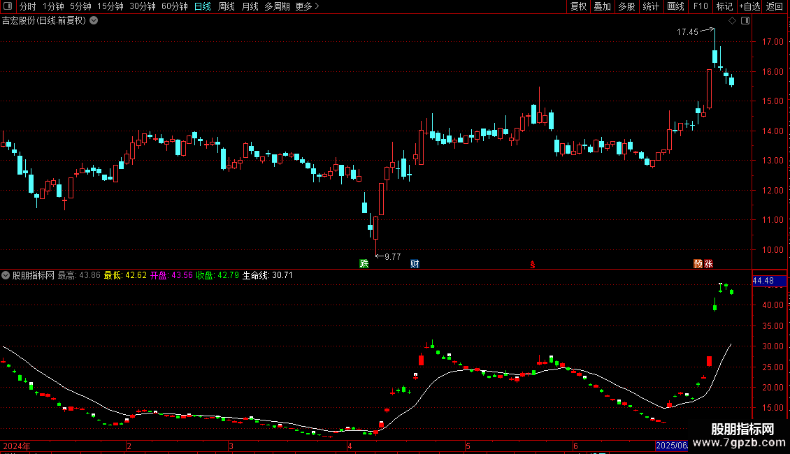 最低:VAR1*LOW/VAR3*1/10,POINTDOT,COLOR009900,COLORYELLOW;