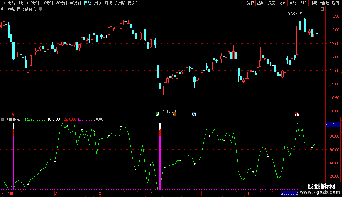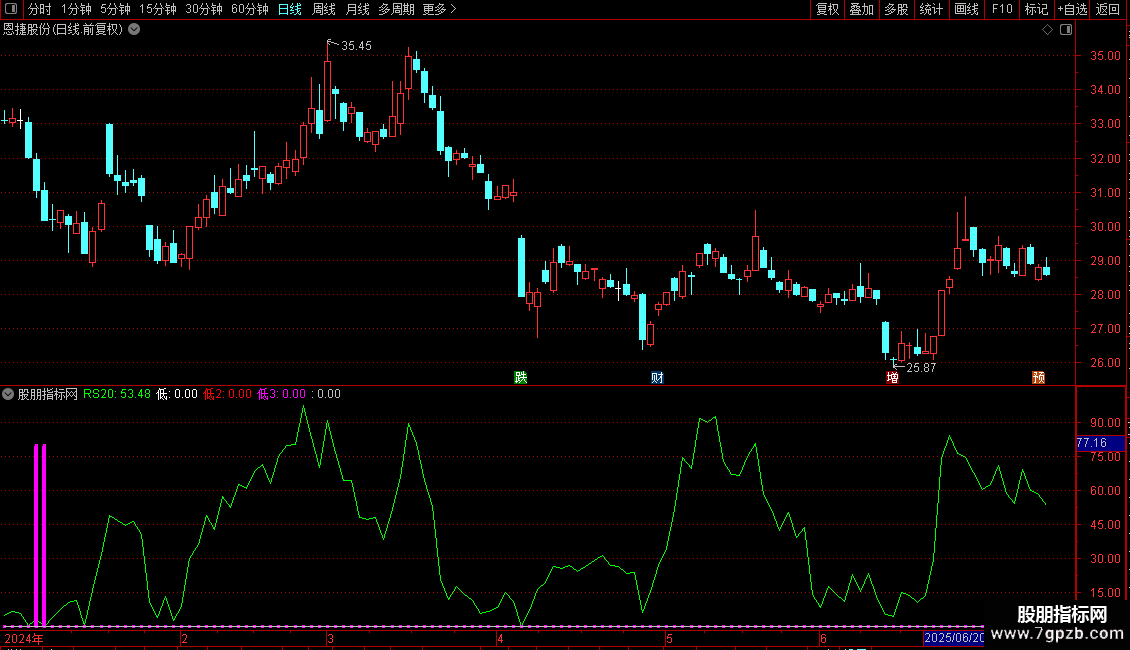 RS20:(C-LLV(L,20))/(HHV(H,20)-LLV(L,20))*100,COLORGREEN;