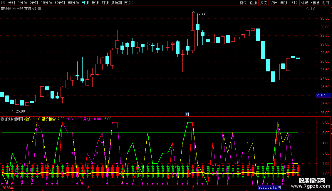 周期1:IF(YES,BARSLAST(CROSS(YES,0.1))+1,0),COLORFF00FF,POINTDOT,LINETHICK5;