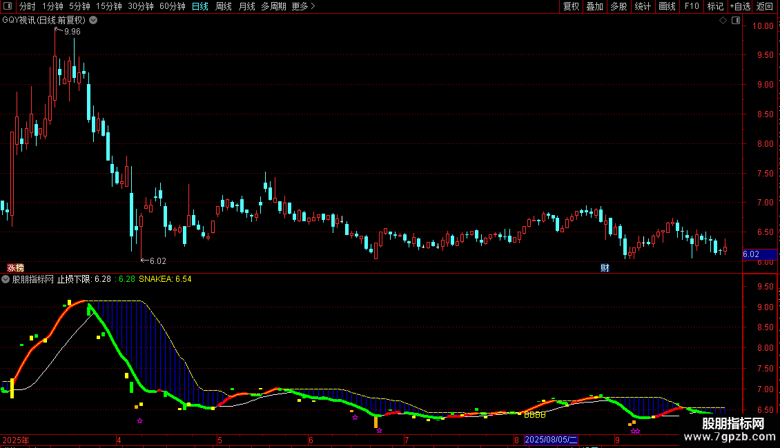 止损下限:IF(LLV(MA(B2,8),3)< B2,LLV(MA(B2,8),3),B2);