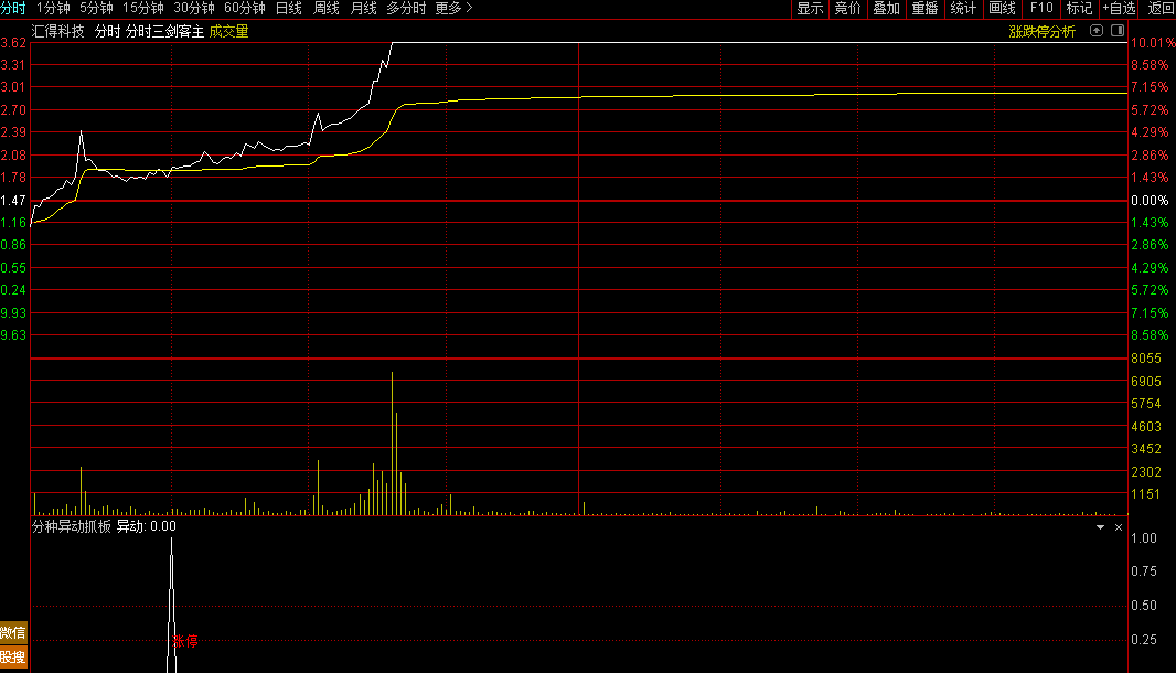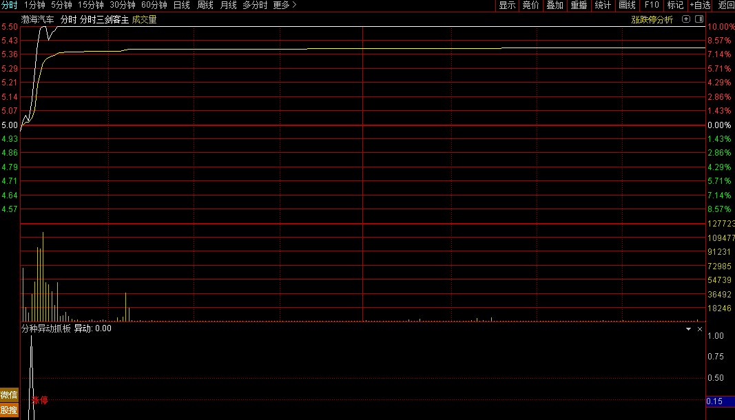 指标名称:分钟异动抓板分时附图!非选股公式!
