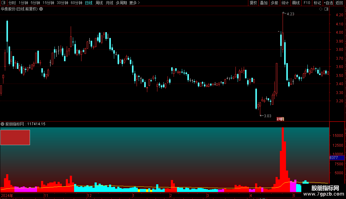 中底VOL:=短底< 中底2 AND 中底2>中底3 AND 中底2< 长底,LINETHICK2,COLORGREEN;