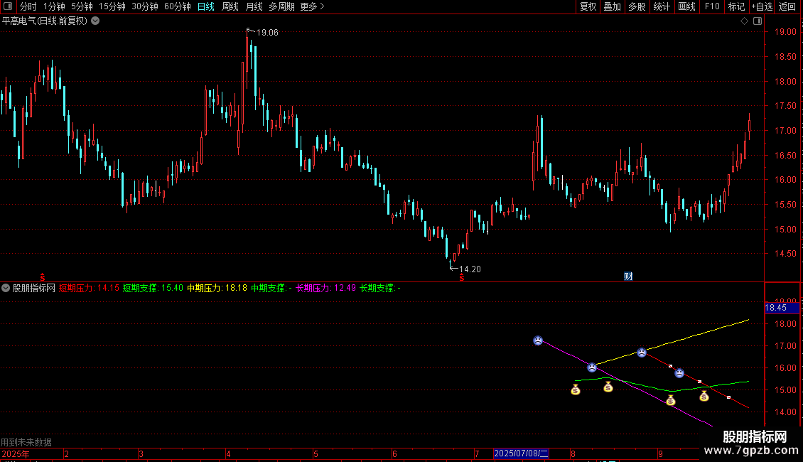 中期压力:DRAWLINE(S3,H,S2,H,1),COLORYELLOW;