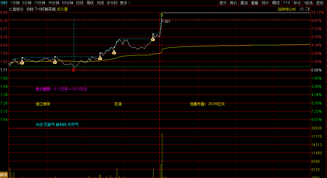 本指标专为短线交易设计,集成了多项实用功能。它可实时显示个股所属板块与概念,辅助快速定位热点。自动标注股价突破前高及涨停的关键信号,并提示具体发生时间。动态绘制阻力与支撑位,结合量能分析捕捉买卖时机。同时集成流通市值、集合竞价量额等核心数据,帮助投资者在盘中迅速把握强势品种的起涨点,优化短线决策效率。适用于盯盘及快速筛选潜力个股的场景。