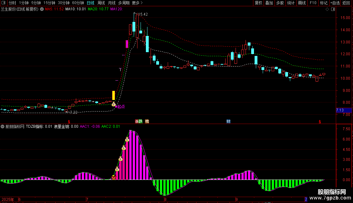 STICKLINE(TDZB指标>=0,TDZB指标,0,2,0),COLORMAGENTA;