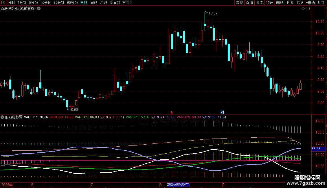 VARG75:IF(VARG73>=17 AND VARG72>0 AND VARG59>65,72.5,50),COLOR7F00FF,LINETHICK2;