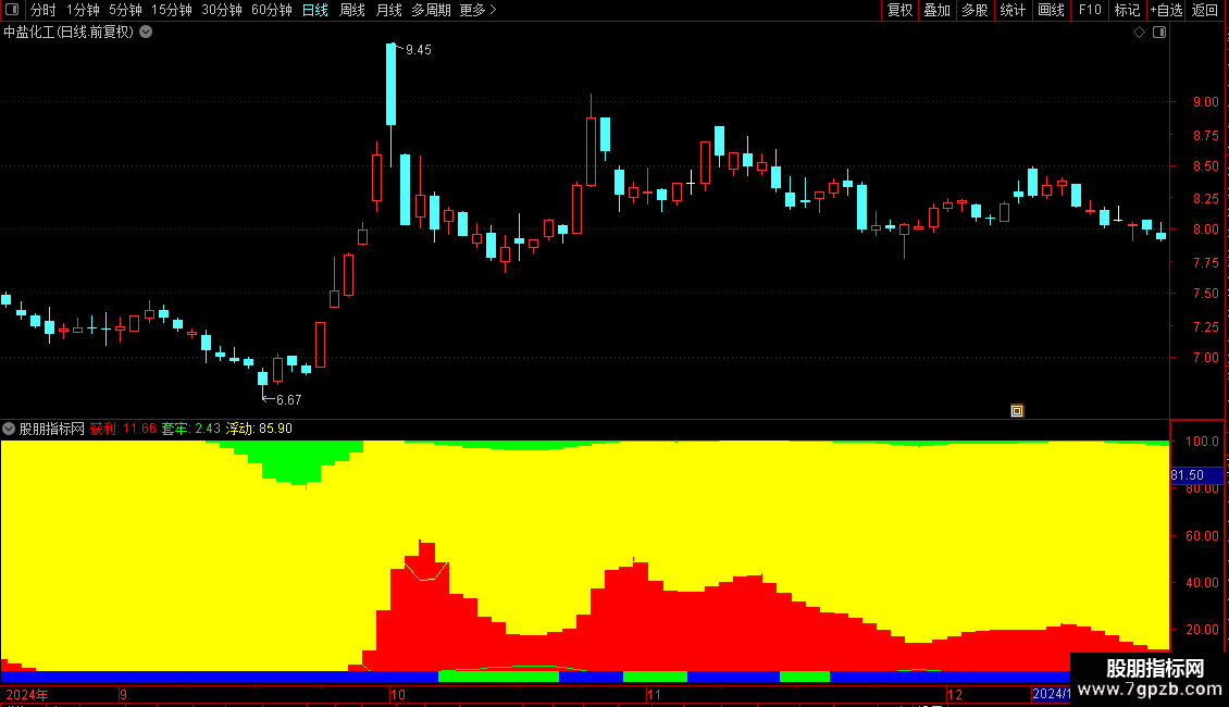 套牢: ( 100.000 - MA(A02,变量00)),COLORGREEN;
