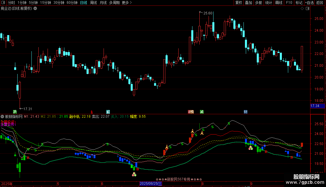DRAWTEXT(CROSS(LOW,买入),LOW*0.98,'B'),COLORRED,LINETHICK2;