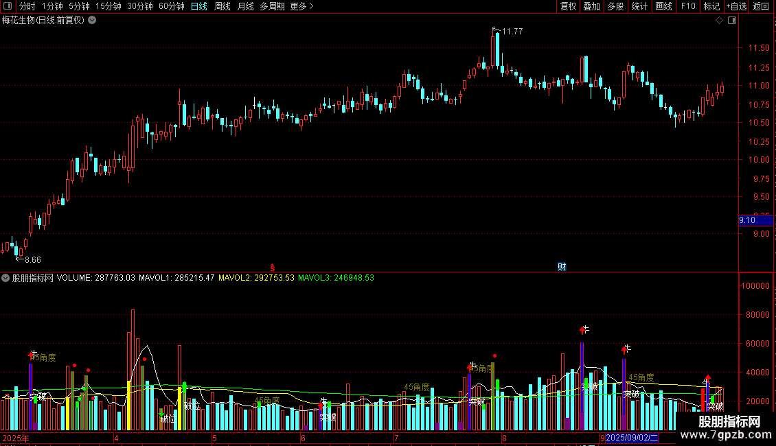 以下是对趋势量能突破指标的全面解析及操作策略,结合代码中的信号逻辑和图形标记进行说明: