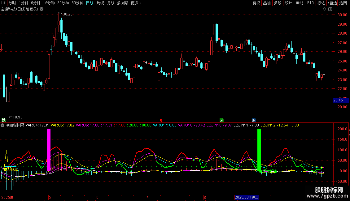 STICKLINE(DZJIN19 AND COUNT(DZJIN19,30)=1,1,200,5,0),COLORFF00FF;