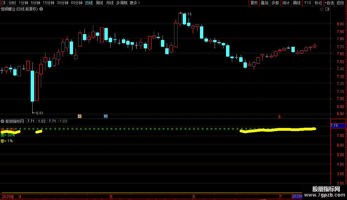 均价:=SUM(C*V,240)/SUM(V,240),COLORYELLOW,LINETHICK1;