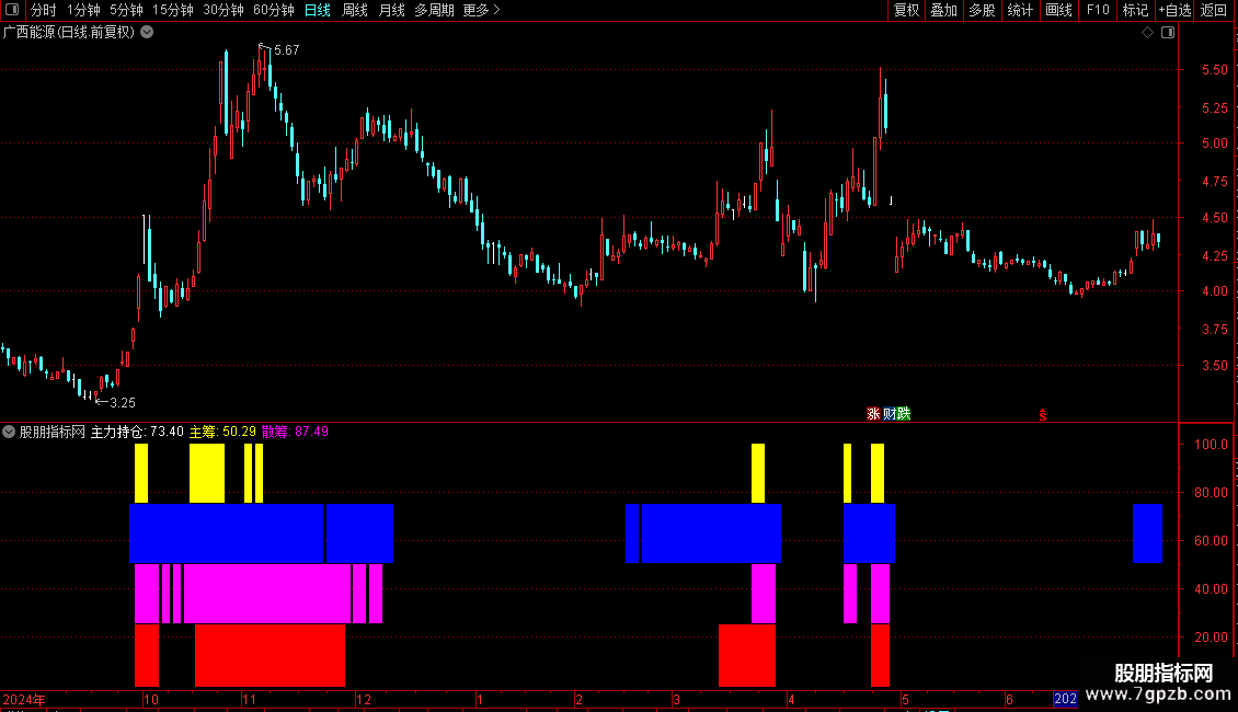 STICKLINE(主力持仓>50,51,75,6,0),COLORBLUE;