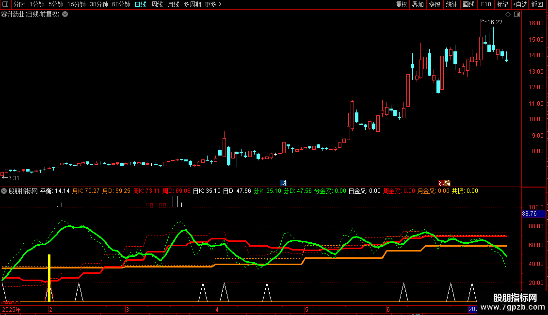 一张图把KDJ日金叉、周金叉、月金叉以及共振时的图像都展示出来了,直观明了,至于怎么使用,大家仔细揣摩,相信必有所得