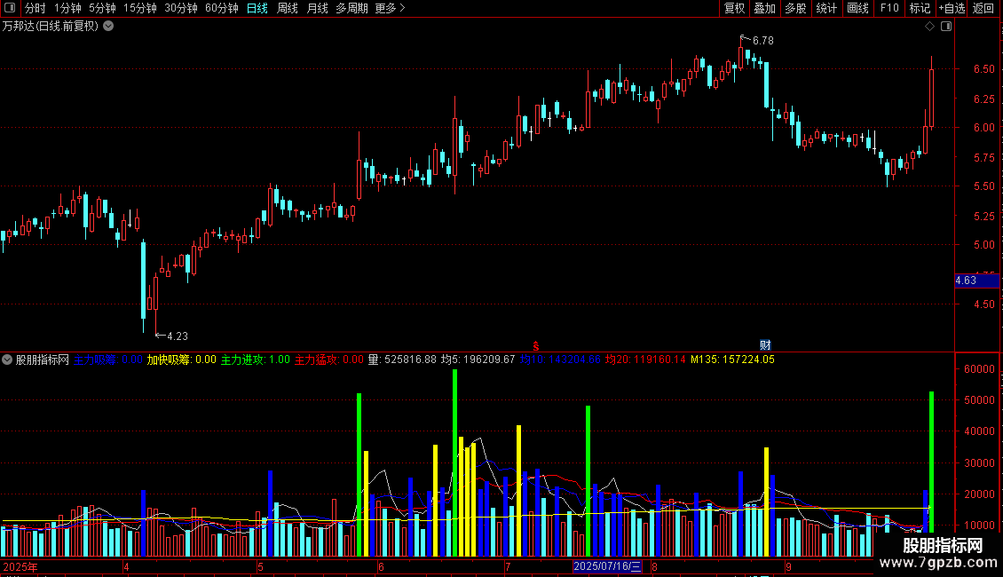 主力进攻:换手率>7 AND 换手率<=10,COLORGREEN;
