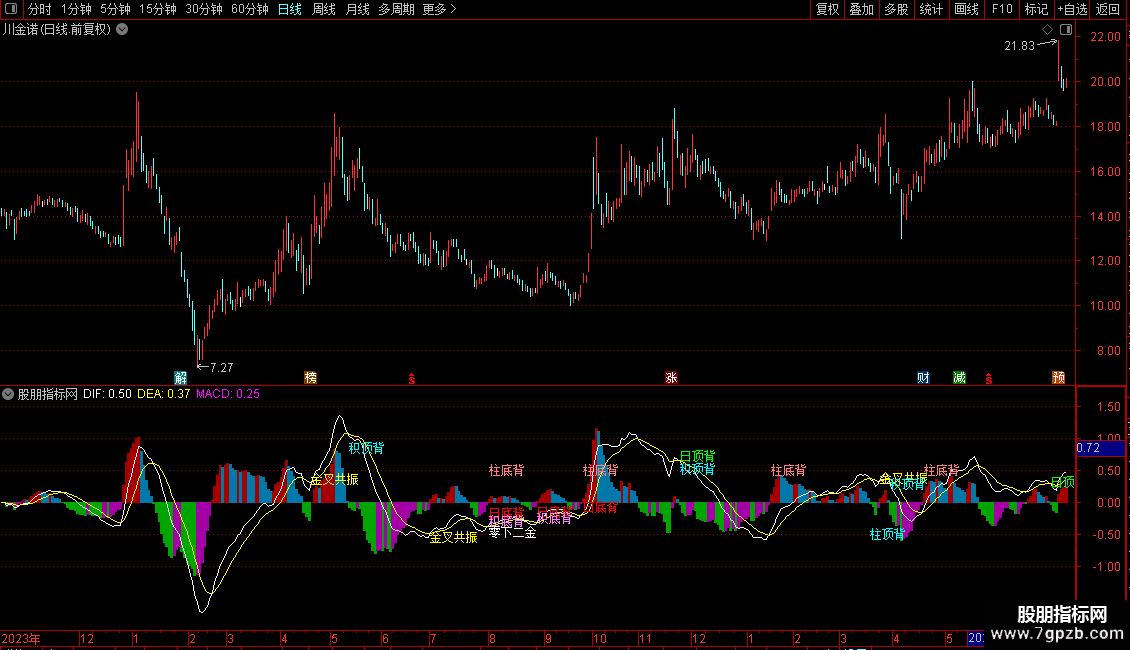 DRAWTEXT(二次金叉,DEA*1.25,'零下二金'),COLORWHITE;