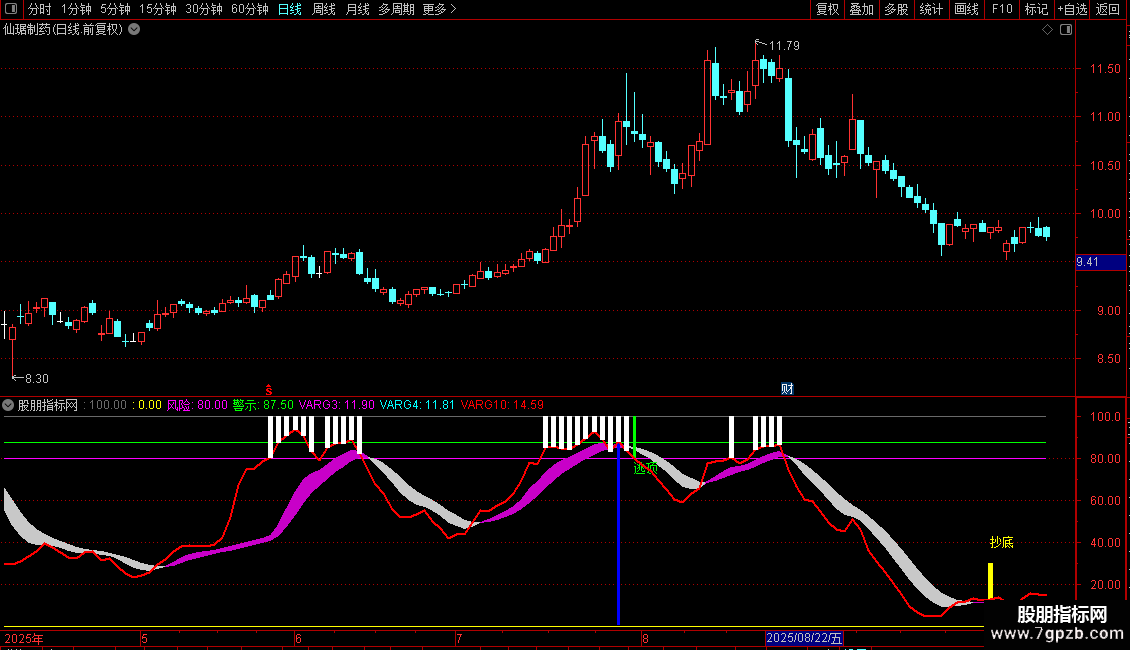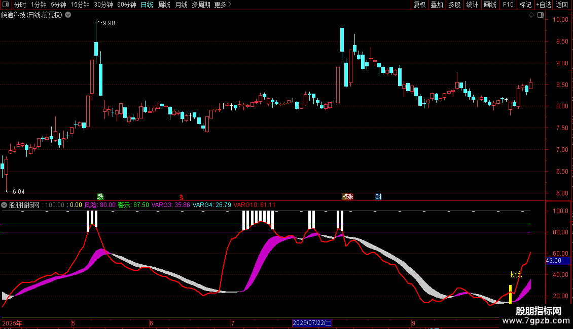 DRAWTEXT(FILTER(VARG5,10)=1,40,'抄底'),COLORYELLOW;