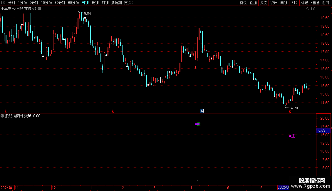 DRAWTEXT(VAR162 AND TIME< 1440,CLOSE,'★庄'),LINETHICK5,COLORMAGENTA;