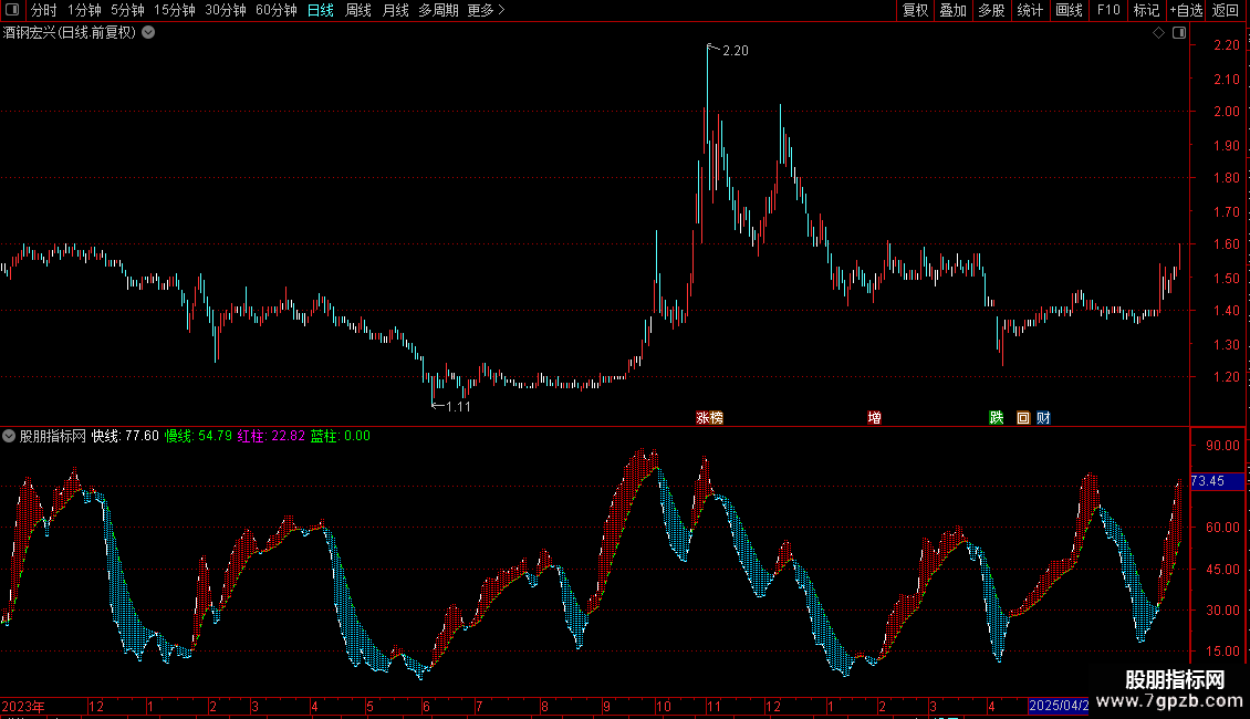红柱:IF((快线 - 慢线) > 0,(快线 - 慢线),0),LINETHICK0;