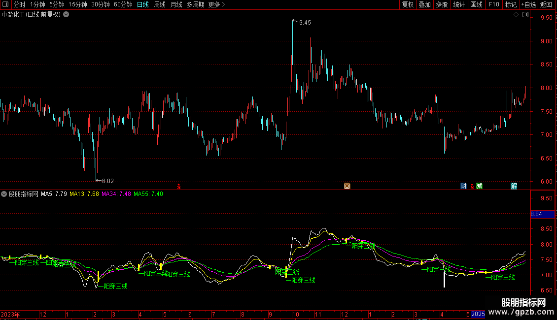 DRAWTEXT(一阳穿三线,L-0.1, '一阳穿三线'),COLORGREEN;