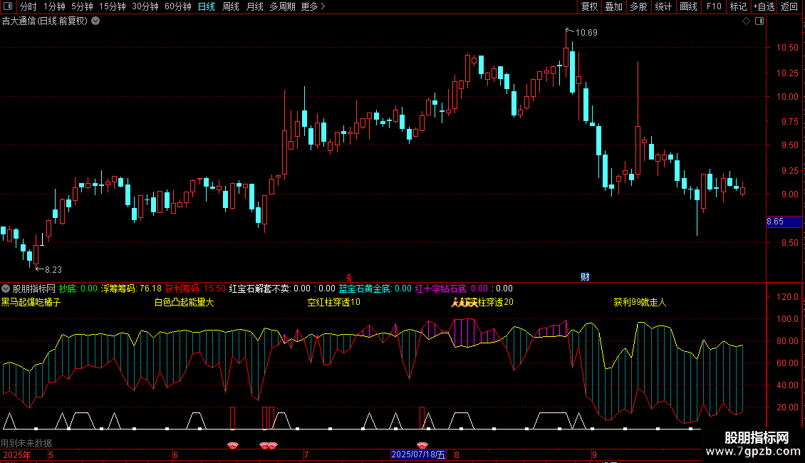 DRAWICON(浮筹筹码<5 AND 获利筹码<5,-10,23);