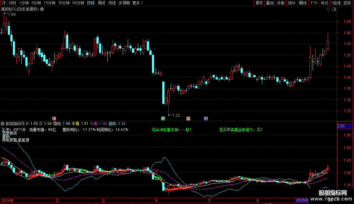 DRAWTEXT_FIX(一般,0.45,0,0,'综合评估基本面:一般!'),COLORGREEN;