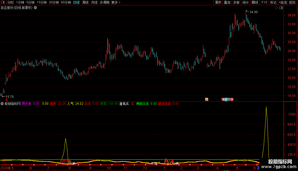 出击:IF(CROSS(趋势,人气) AND (趋势<30),20,0),COLOR0000FF,LINETHICK2;