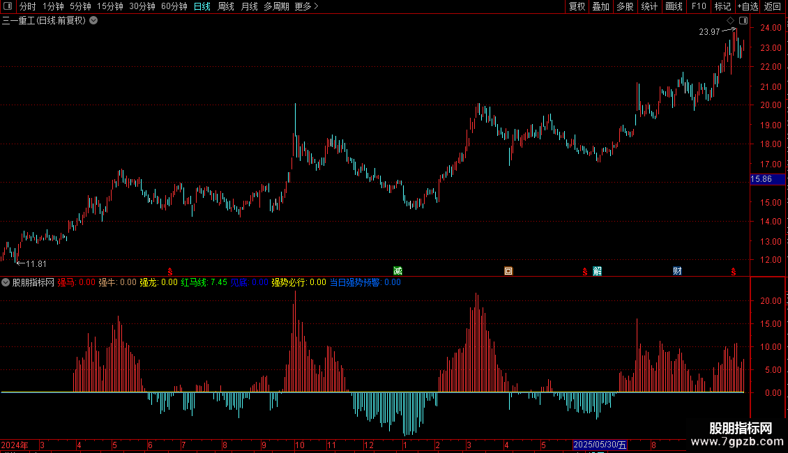 强势必行: IF(FILTER(红马线>0 AND 强马 AND 红马线>0 AND 强牛 OR 红马线>0 AND 强龙,5)=1,30,0),linethick2 , COLORYELLOW;