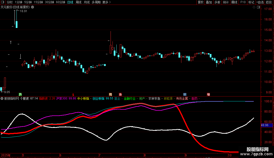 操作策略是:当个股波线从下方穿越指数波或行业线时买入,从上方跌破时卖出。可以关注个股与沪深300、创业板等指数的相对强弱变化,以及在金融、医药等热门行业中的表现差异。