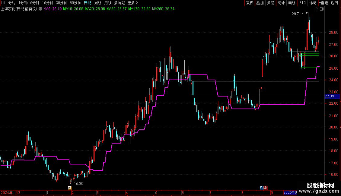 图中每条线都是压力线,相反每一条也是支撑线。指标在沙盘推演中,可以看到股价在一些压力点附近来回震荡,下跌过程中绿线成为支撑点,上涨过程中绿线就成了压力点。