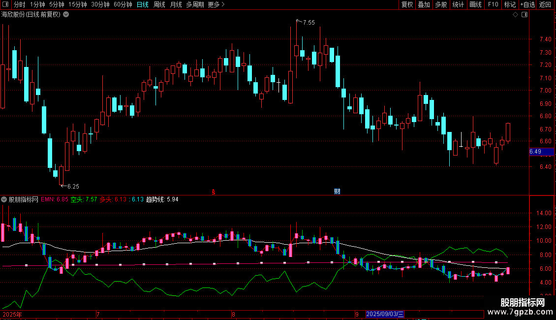 空头:EMA((EMN-(C-EMN)*C),1),COLORGREEN;