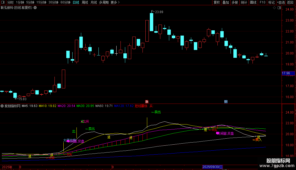 MA20:MA(C,20);A2:=REF(MA20,1);J1:=(MA20-A2)/A2*100;MJ1:=MA(J1,3);