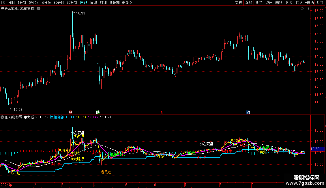 主力成本:EMA(X,13),COLORFF00FF,LINETHICK0;