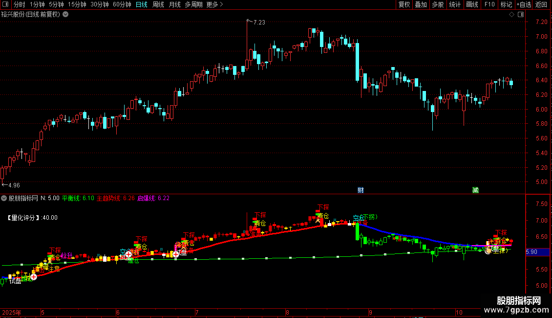 主趋势线:EMA(EMA(C,10),10),COLORRED,LINETHICK3;