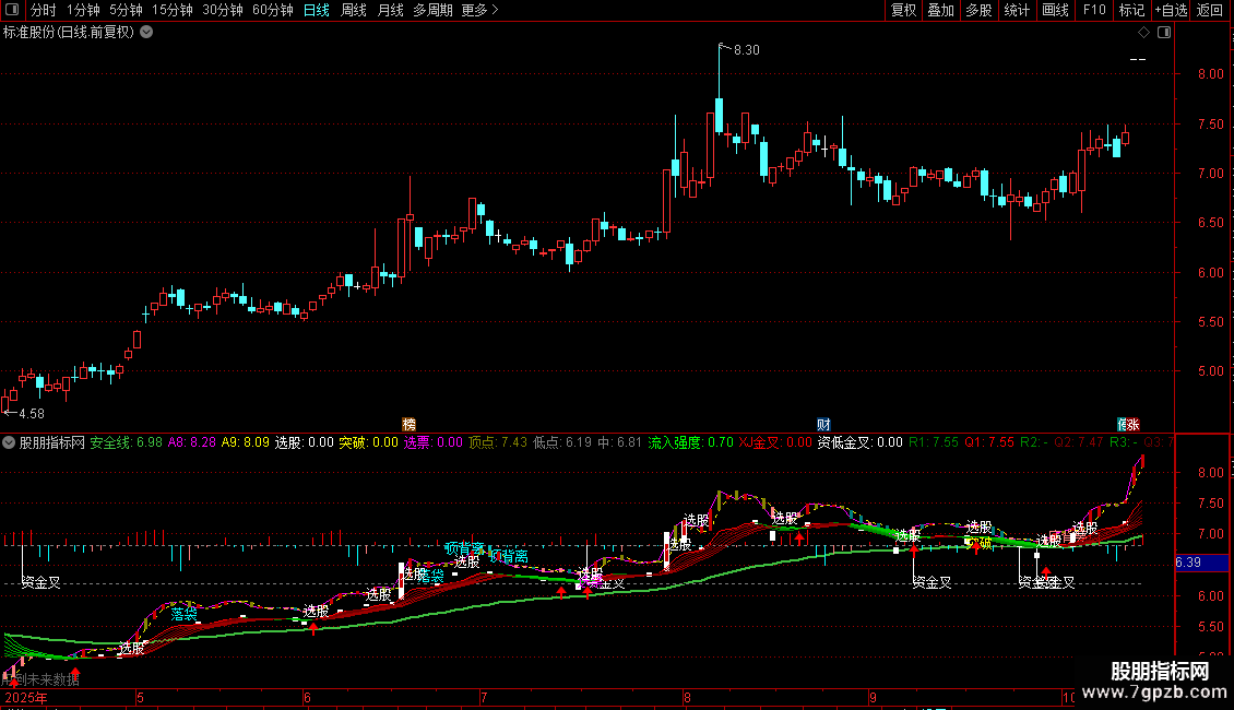 通达信源码,主副图都可以,当出现"突破"可买入,资金金叉可操作短线。