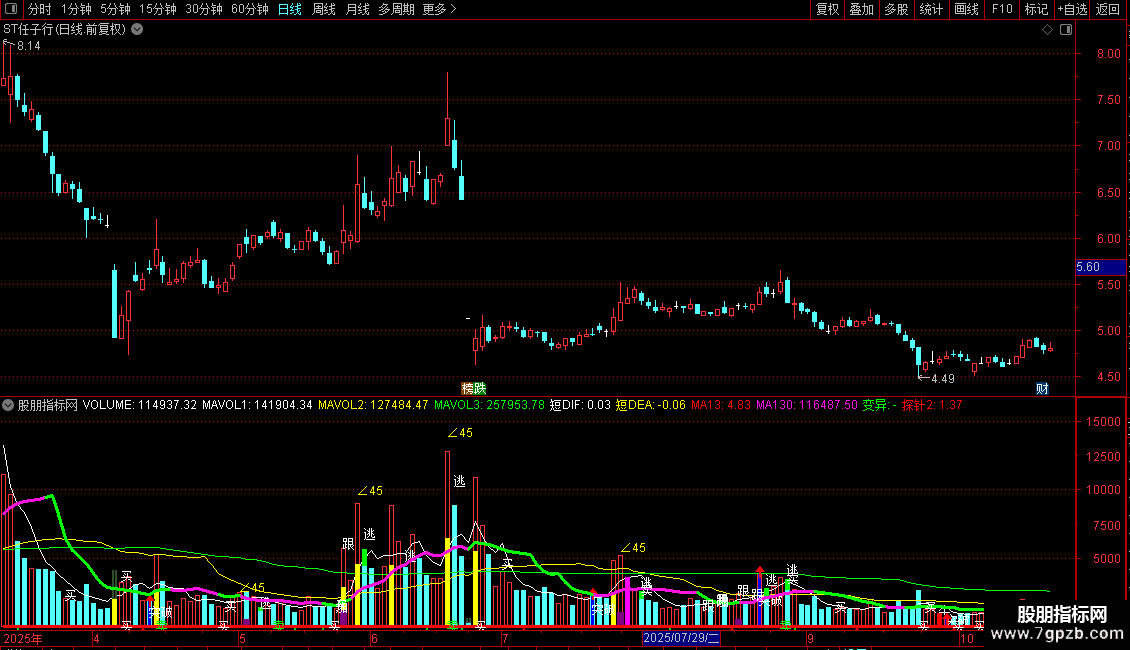 STICKLINE(跌停,VOL*0.5,VOL,2.5,0),COLOR2F4F2F;
