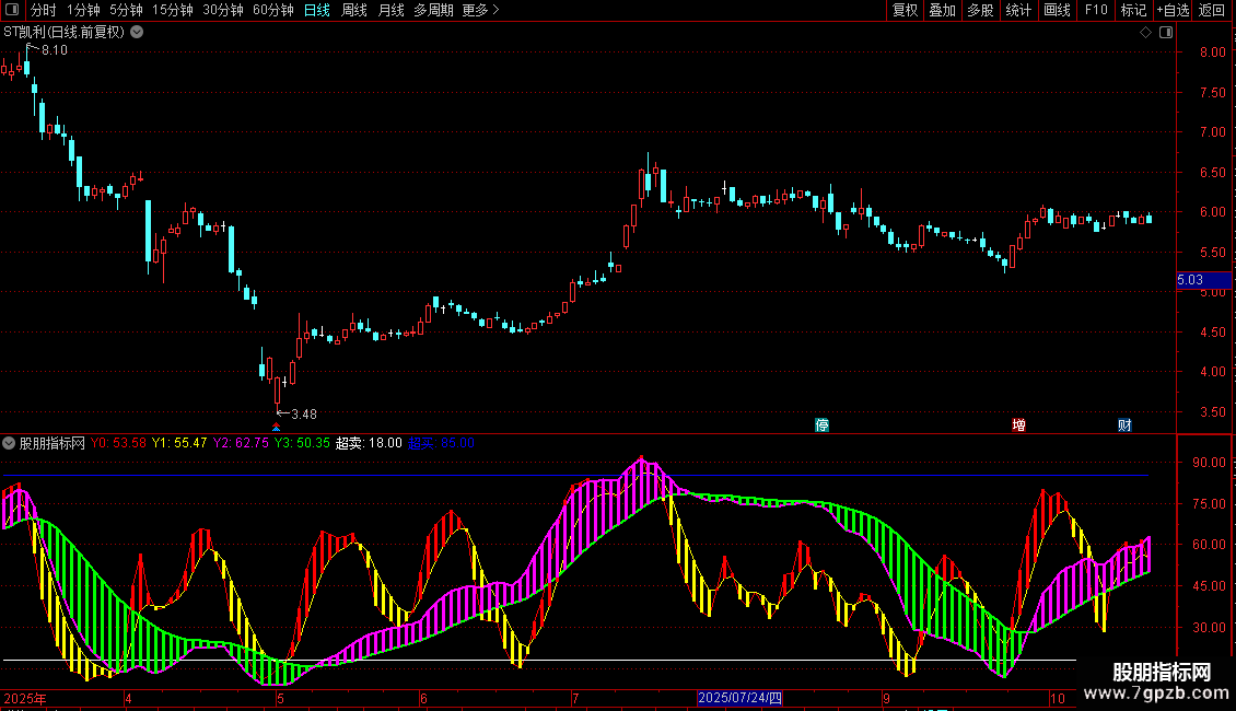 Y0:SMA(RSV,3,1),COLORRED,LINETHICK1;