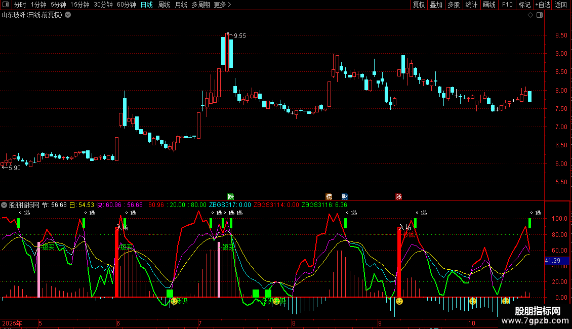 • 风险控制:指标在80附近设置“逃顶”信号(快线下穿90),及时提示超涨风险。