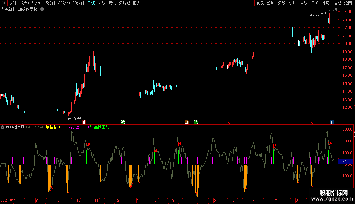 DRAWTEXT(逃离铁掌帮,CCI,'铁'),COLOR0000FF;