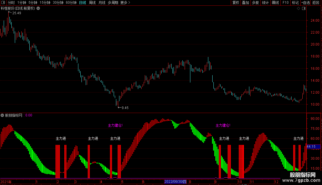 STICKLINE(B1-机构趋势<0,B1,机构趋势,3,0),COLOR00FF00;