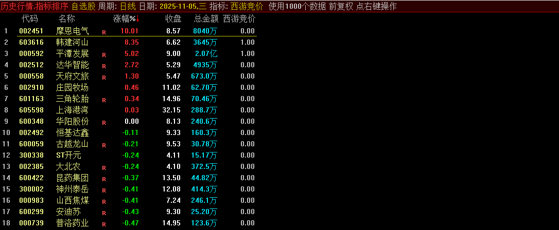 通达信【西游竞价】早盘竞价排序选股金钻指标信号少不漂移源码